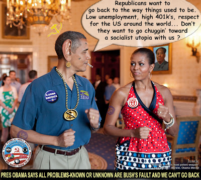 Chuggin' off to Utopia... Economy going south? Poll numbers in the toilet? Dems in Congress in a panic? Whats a president to do? Blame Bush!
