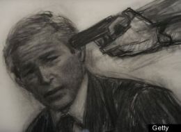 One sketch in the controversial series, titled "Enemies," depicts Bush kneeling on the ground while artist Gil Vicente presses a pistol to the former president's temple. In other sketches, the Queen is apparently unaware of the artist pointing a gun directly at her back, while Pope Benedict XVI faces Vicente directly, his arms outstretched in a quizzical shrug. Other world leaders shown in Vicente's 9-sketch series include former Israeli Prime Minister Ariel Sharon, Iranian President Mahmoud Ahmadinejad and Brazilian President Luiz Inacio Lula de Silva, according to The Telegraph.