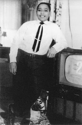 In what must have been an excruciatingly painful decision, Mamie Till Bradley chose to distribute an unspeakably gruesome photograph of her son's corpse to newspapers and magazines for all the world to see in late 1955. Fourteen-year-old Emmett Till had been beaten, disfigured, shot in the head, bound with barbed wire attached to a 70-pound fan, and thrown in Mississippi's Tallahatchie River by white supremacists. That single image, published only in Jet, The Chicago Defender, and other black periodicals, is considered by many to be the spark that ignited the Civil Rights Movement; the Montgomery Bus Boycott started three months later.