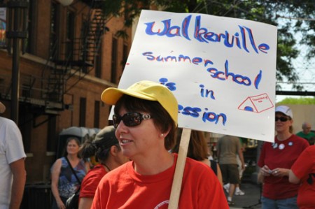 United States News Title: The Good News in Wisconsin That the Media Isn’t Covering This week in Madison, Wis., has seen the largest protests since a "budget repair bill" virtually outlawing collective bargaining proposed by Gov. Scott Walker inspired an occupation of the state capitol building and massive street protests this past winter. Now, thousands are protesting Governors Walker drastic cuts to the social safety net and workers rights, contained in his 2011-2013 budgets. The budget would cut education funding by $824 million and Medicaid by $466 million. Walker is making these cuts despite giving away nearly $320 million in tax cuts to big corporations. The Republican governor has also proposed allowing local governments to privatize their highway departments and hire private contractors to maintain state roads in Wisconsin. This upset many highway workers who would be stripped of their union representation if highway work was privatized in Wisconsin. Many claim not having union representation would make highways dramatically more dangerous as it would be more difficult to speak up about safety problems if highway workers did not have union protection. Also, the budget bill would strip police and firefighters of their right to collective bargain over their healthcare plans. Previously, police and firefighters had been exempted from the ban on public employees collectively bargaining that passed as part of a budget repair bill in March. Of course, a Wisconsin Court has ruled that that bills passage was illegal since it violated the Open Meetings Law. It nullified the bill. There are even rumors that Republicans might try to pass a new, less legally dubious version of the ban of public employee collectively bargain as part of the 2011-2013 budgets, since Republicans expect to lose control of the State Senate in a series of six state senate recall elections to be held this July. Activists, who have been locked out of the Capitol by Governor Walkers administration despite numerous court orders telling the administration to re-open the Capitol, have responded by setting up a tent city on the Capitol Lawn called Walkerville. More than 300 people have been sleeping on the lawn of the Capitol all week lawn in protest of Walkers attempt to pass the bill. On Monday, there was a large march against the budget by more than 1,000 people led by former Senator Russ Feingold. While there has been a lot of coverage of the recent protests in Wisconsin in local media and national progressive outlets, what hasnt been talked about much is what the protests now entering their 116th dayif you start counting from the initial response to Walker's "budget repair" bill back in Februaryhave done to deepen the militancy of the people involved. As the struggle in Wisconsin wears on, workers have become engaged not just in acts of protest, but in acts of civil disobedience. On Monday, 25 people were either arrested or cited including two journalists from the media outlet The UpTake, who were covering the protesters breaking into the Capitol. Activists have also gotten more creative in how they have targeted expanding direct, militant action to other targets of corporate power. After the protesters were pushed out of the Capitol, they went to the local M & I Bank branch, a major financial backer of Governor Walkers campaign where by protesting it they forced the bank to close for the day. Activists have begun to draw up lists of banks that pay no taxes and look for ways to resist the attempts of those banks to foreclose on homes in their neighbors. The attack on workers rights in Wisconsin has proven to be a training ground for activists in a lot of ways that are going to pay long-term benefits for activism in the state. Unions stripped of their ability to automatically deduct dues from workers pay checks have started training activists and shop stewards to collect dues individually from workers each month. Collecting dues individually from workers is a process that involves hundreds, thousands of activists. I think what my union AFSCME has done is really cool. We have had a huge discussion of the old-school style of unionism with our rank-and-file members that we havent had in the past, says Edward A. Sadlowski a staff representative for AFSCME in Wisconsin. He continues: While the mainstream media has focused heavily on the change that could come from the upcoming recall elections in Wisconsin, the real long-term change is likely to come from the galvanization and training that the attack on workers rights has provided for activists in Wisconsin. Activists have been gaining a confidence and creativity in their ability to take on entrenched corporate power while at the same time union members have become more involved in running their unions. This promises to have a generational long-term effect much greater than any recall election for a four-year state senate term.