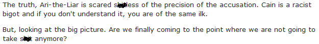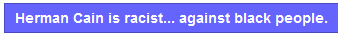 So the Left was clearly stuck in a quandary of what label to stick Mr. Cain with. The lie they came up with? Herman Cain is racist against himself. A simple Google search reveals an explosion of such sentiments.