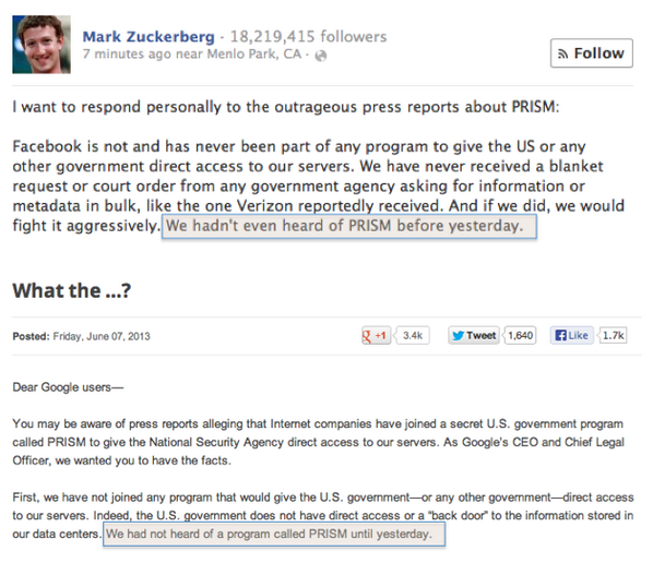 Title: Mark Zuckerburg and Larry Paige make eerily similar comments denying involvement in NSA spying