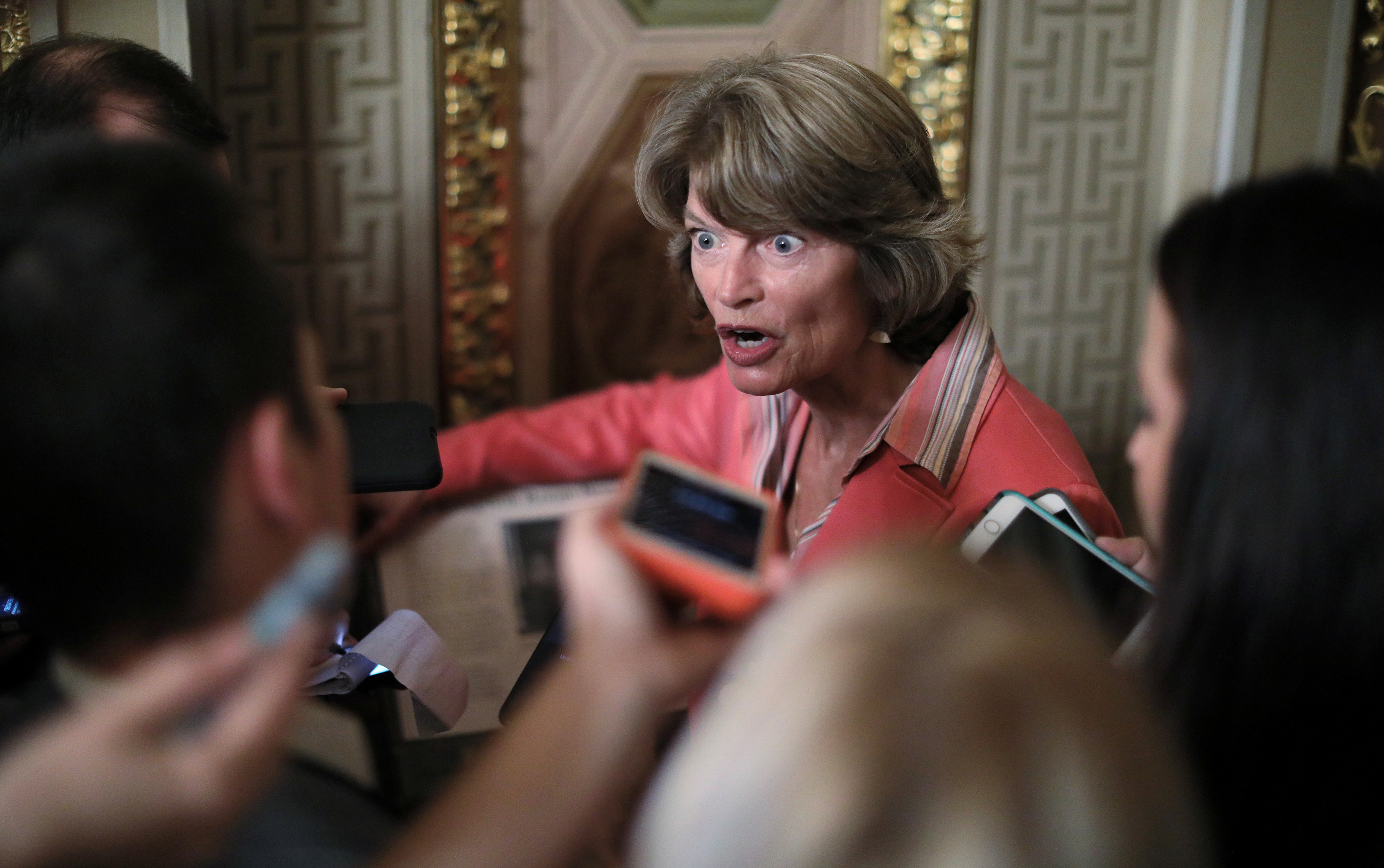 A Great American U.S. Senator Lisa Murkowski (R-AK) talks to reporters after the U.S. Senate confirmed the Supreme Court nomination of Judge Brett Kavanaugh at the U.S. Capitol in Washington, on Oct. 6.